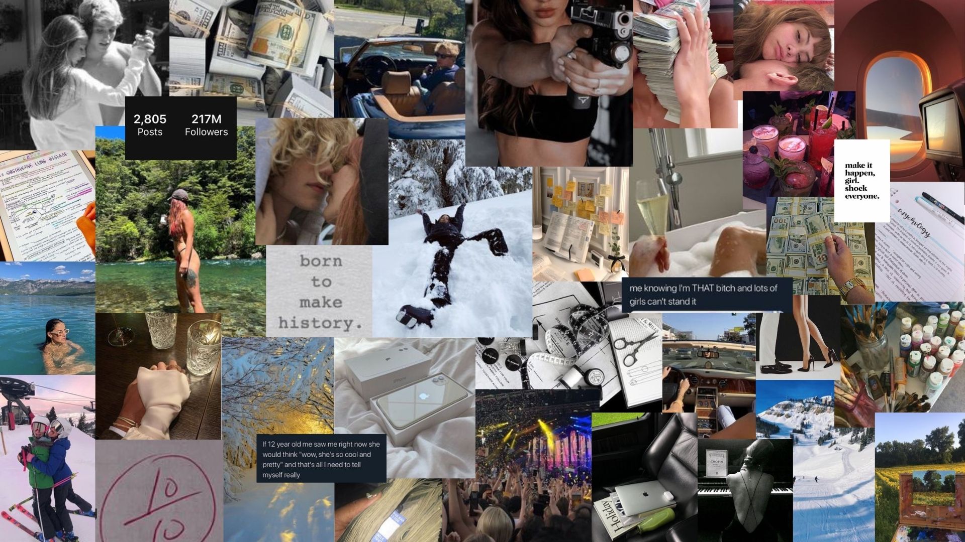 A vision board is a way of manifesting things you want to happen, it is made out of images of those things you want to welcome into your life as soon as it’s meant. I prefer to make it in Canva and use it as my wallpaper but you can also make them by printing little images and sticking those into a board so that when you wake up it’s the first thing you see.