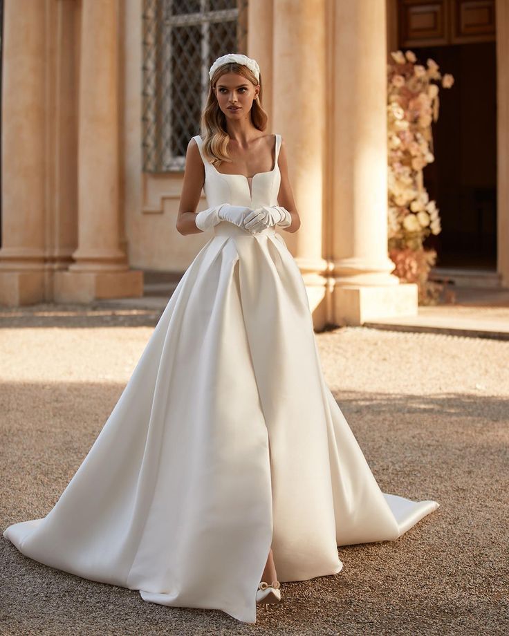 To amplify the sense of luxury and opulence, these dresses often incorporate intricate beadwork, shimmering sequins, or crystal embellishments. The color palette for modern glamorous dresses embraces metallic tones, such as silver, gold, or rose gold, allowing the bride to shine like a star on her special day. These dresses strike the perfect balance between modernity and timelessness, making a bold and unforgettable statement.