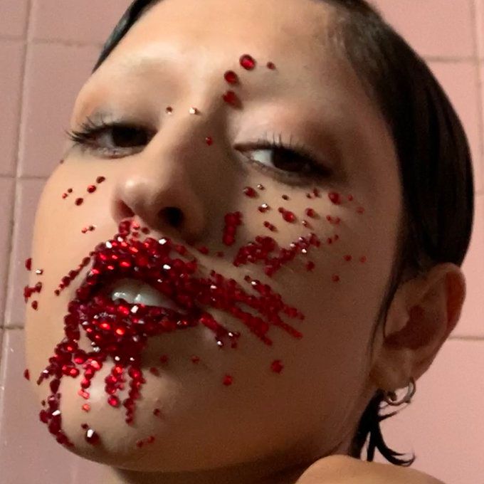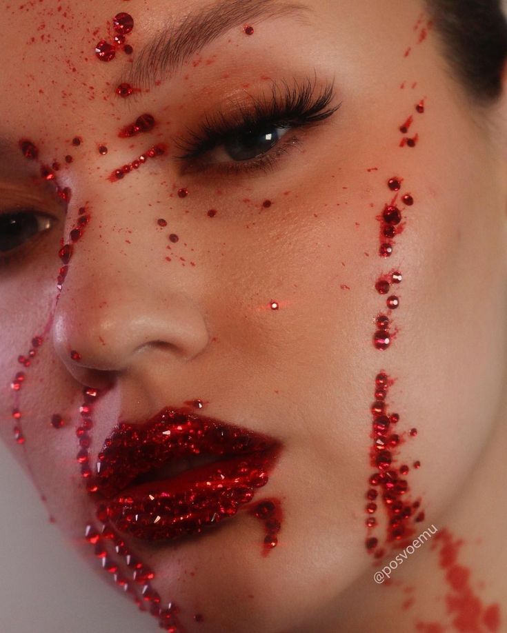 Now, if you’re aiming for a more sinister and edgy vibe this Halloween, blood stains with a dash of glitter are the way to go. It’s like a glamorous vampire chic, and who doesn’t love a little glitter to spice things up?