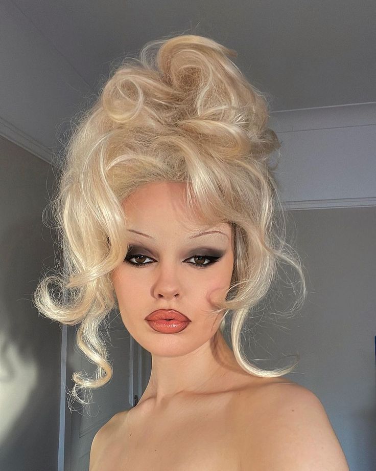 The eyes are the focal point of this look, so don’t be afraid to go big. Opt for bold, winged eyeliner and layer on plenty of mascara to create the iconic wide-eyed look. You can also add false lashes for extra drama.