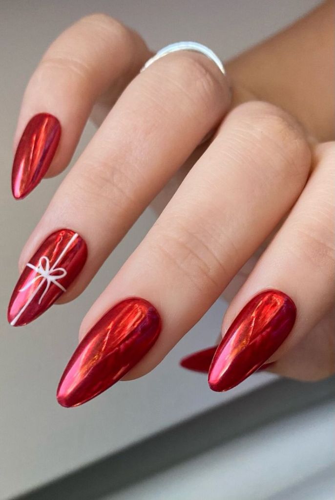 let’s address the quintessential hue of the season – red. But not just any red, sweethearts. We’re talking about the kind of red that makes Rudolph’s nose jealous. Picture a deep, rich crimson that exudes sophistication and confidence. Red nails are timeless, a classic choice for the festive season, and let’s face it, they pair perfectly with a glass of vintage champagne.